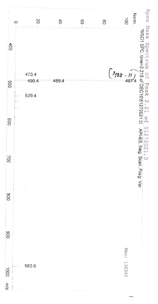 .Figure S 03: Mass spectrum of 11-chloro-9-ene-boswellic acid (3)