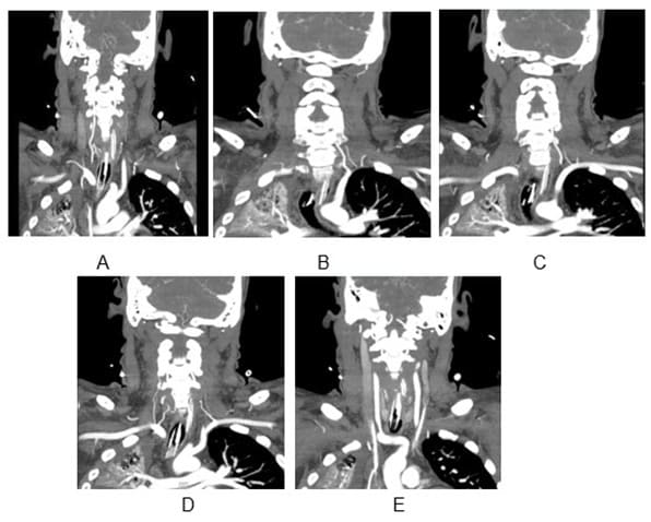 Figure 5A: 5E-CTA neck done few days later showing intact vasculature.