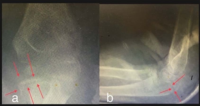 Keywords: Child; CORHD lesions; Multiple osteochondralarticular TRASH lesions; Coronoid fracture; Olecranon fracture; Distal and posterior radial head dislocation; Intact annular ligament; Typological classification of Monteggia fracture- dislocation