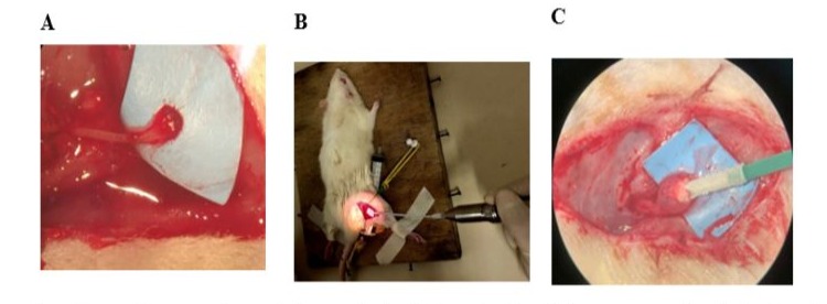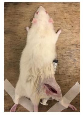 Figure 1: Lateral incision in the animal’s right thigh, through which the sciatic nerve was exposed.