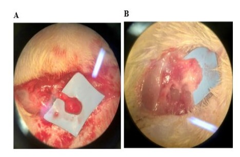 Figure 7: Microscopic visualization of the tibial nerve at the end of the study. Neuroma in the Control Group (A). Neuroma in the Cryotherapy Group (B).