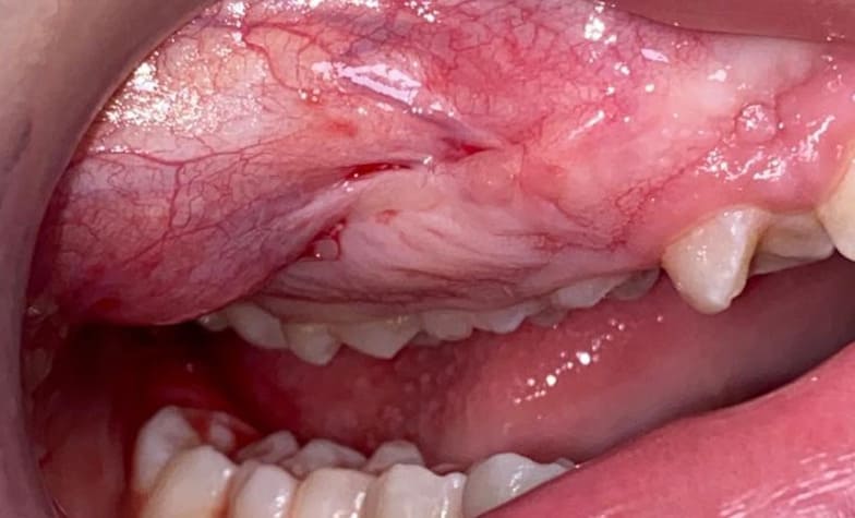 In Case 2, the patient exhibited favorable aesthetic results without neurological consequences. The post-operative CBCT at the 3-year follow-up indicated maintenance of the alveolar structure, with partial ossification of the defect.