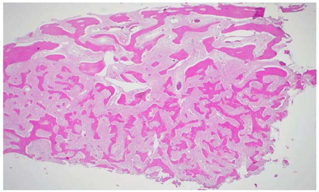 Figure 10: H&E, 25X,: Irregular and curvilinear arrangement of trabeculae.