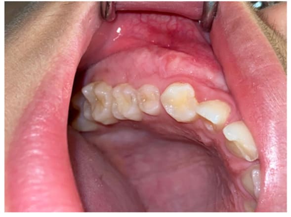 In Case 1, the patient was informed about the altered passive eruption of dental elements in the first quadrant, but the parents refused the suggested surgical crown lengthening to improve this condition. Instead, for the retention of the right permanent upper canine, it was recommended to initiate fixed orthodontic therapy to create the space required for proper permanent eruption. Subsequently, surgical exposure of the canine and orthodontic traction was planned.