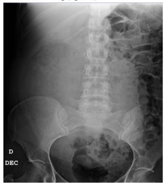 Figure 1: The abdominal x-ray reveals the displacement of the bowel loops into the left hemiabdomen.