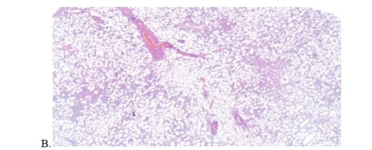 In all cases, both the immediate and late postoperative periods were uneventful. Microscopic and immunohistochemical analysis of the pathological anatomy confirmed the presence of AML (figure 7). Serial sections showed a proliferation of adipose tissue, smooth muscle and blood vessels. The tissued stained positive for actin and negative for cytokeratin.