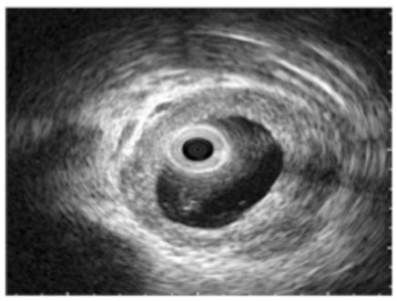 Figure 2: Intraductal ultrasonography shows wall thickness with smooth outer margins in the bile ducts without stenosis in immunoglobulin G4-related sclerosing cholangitis patients [17].