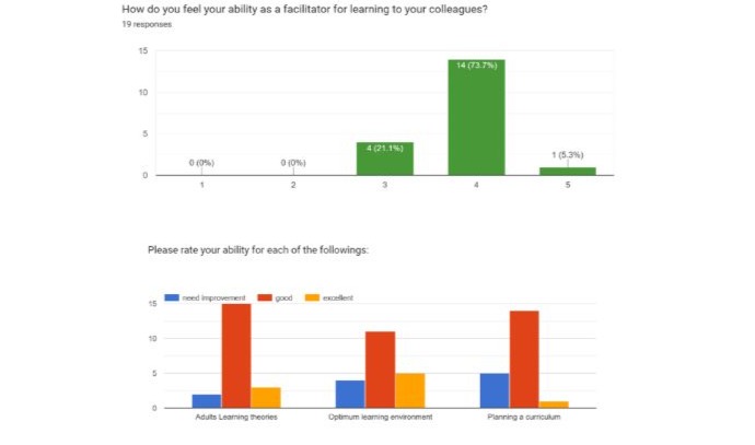 5. The last point which is adult learning theories, I do not have such an expertise that’s why needing improvement was my answer. |