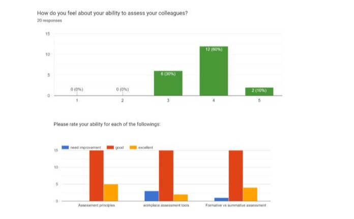 - Residents express their knowledge of Assessment principles, and their feel of ability to assess their colleagues, yet need more training and understanding of Workplace Based Assessment tools required by the SCFHS.