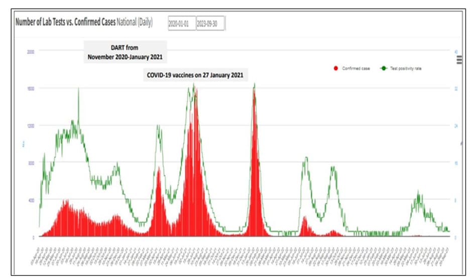 Figure 3. DGHS, Bangladesh Number of Lab Tests vs. Confirmed Cases National (Daily).