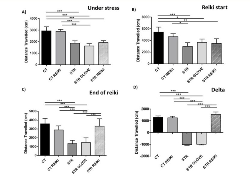 Finally, the present data show for the first time that reiki can lead to recovery in locomotor activity improve behavior in stressed animals, and even modulate gene expression related to inflammation and oxidative stress in the brain’s hippocampus. In addition, the healing effects of reiki are based on the body’s energy [37,94].
