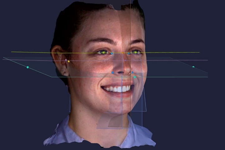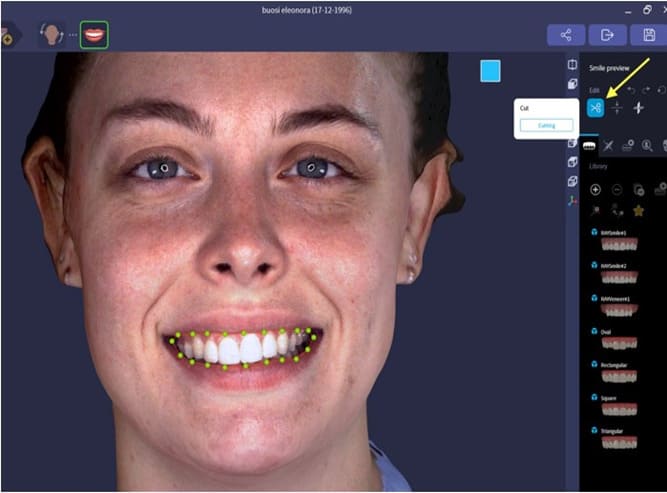 Figure 10: Positioning inter pupillary, midsagittal, and Camper planes on the facial scan helps the dentist and technician in determining the ideal teeth shape in relation to the patient’s smile line and lips position.