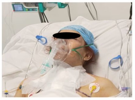 Figure 21: Photo of the patient on postoperative day 1 (J1) after extubation, hemodynamically and respiratory stable with low oxygen requirements.