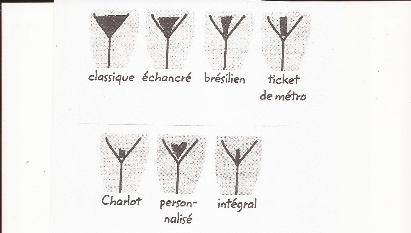 They various damages against pubic hair and the labia minora lead to give to the sex of the willing victims a uniformed, anonymous aspect looking like a slotted apricot. Infantilization and depersonalization. The wish of these phobic women seems to deny their confusing but responsible adulthood to display a vulva of a little girl as if they want to escape from the problems and vicissitudes of sex and love life of grown-ups or in displaying the hairless pubis of very old ladies they want to show that they are out of the running, discourage the unwelcomed. But this way depriving their sex of its personalizing characteristic, the pubic hair and the nymphs, they refrain from displaying the least original eccentricity: "I am like the others", the hidden meaning: the others got through the shaper. In this way Bernadette, Yvette, Jeanette, Claudette, Mauricette and their sisters, their cousins have the same sex, perfectly hairless, the nymphs recut standard size. This is not a progress of the feminine condition.