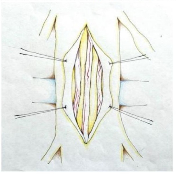 Figure 1: “Hanging Garden” Technique of Traction Suture Placement.