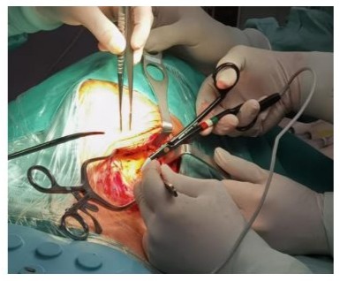 BiClamp® (ERBE, Tübingen, Germany) would be an innovative bipolar coagulation system with an adjustable current modulation and intelligent self-control. Such as it could transform electrical energy into heat, thus attaining an ideal energy-based vessel seal, with a minimum dissipation of the heat produced and electrical dispersion in terms of surface yield on the area involved. This evidence probably positively impacted the outcome of the procedure by significantly reducing the rate of inflammation and the imbibition of adjacent soft tissues (Figure 3). The use in thyroid, hepatic and gynecological surgery has already been successfully tested [1,2,7]. Vessels with a diameter ≤7 mm can be successfully sealed by BiClamp alone. ERBE’s BiClamp® is a reusable, cost-effective instrument. Such device has been widely used in other types of surgical procedures, such as thyroidectomies, hysterectomies, and breast surgery, with proven efficacy and safety. [7-9] The jaws of instrument allowed a dissection of the tissues like a common dissector, ensuring the simultaneous possibility of safely coagulating any sources of bleeding. The reference target for the mean caliber of the vessels we cauterized was about 5.2 mm (RVD 3.8 ± 1.4) (Reference Vascular Diameter). The alternative methods in larger caliber vessels is ligatures with Vycril 3/0 (Ethicon®) upstream of the cleavage or vascular clips (B.Braun Vascular Clips®). In both our cases no traditional ligature was used.