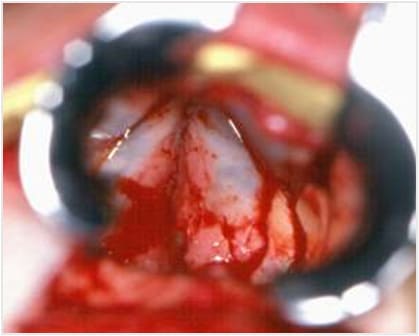 There are two different ways to perform it: either via a sublabial approach or via an endonasal approach.