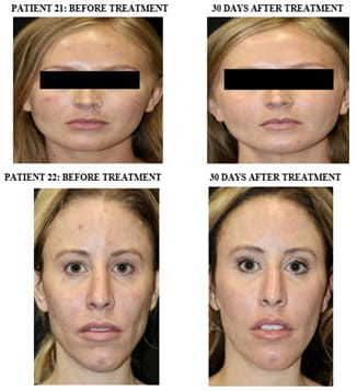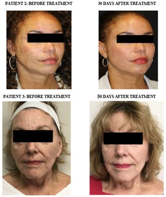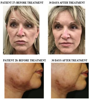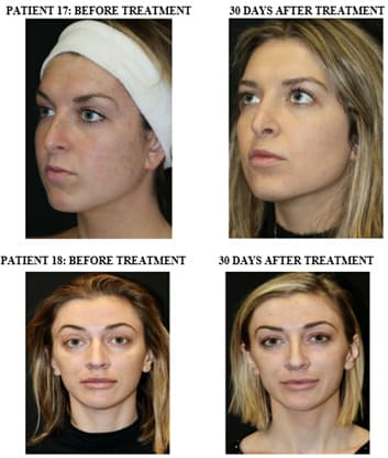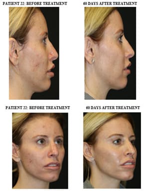 Linear analog scales were administered to reflect the patients’ perception of skin quality, and that of the treating physician. Photographs were taken to document results.