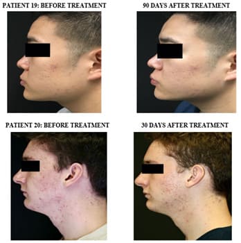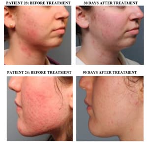 Reduction of pustules, comedones, and nodles 30-90 days after lesing NO Serum twice daily.