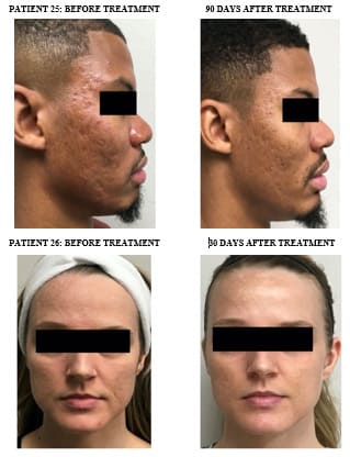 Improvement in tone, quality of skin and reduction of acne scars 90 days after using NO Serum three times daily.