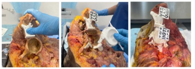 Ten cadaveric hemipelves were used, each undergoing preoperative planning based on computed tomography (CT) imaging. Segmented 3D models of the pelvis and the patient-specific implant were generated using the 3D Slicer software. Each hemipelvis was labelled with Roman numerals (I to X) using metal clips to ensure accurate traceability. The implants were designed following the same protocol established in our previous study.